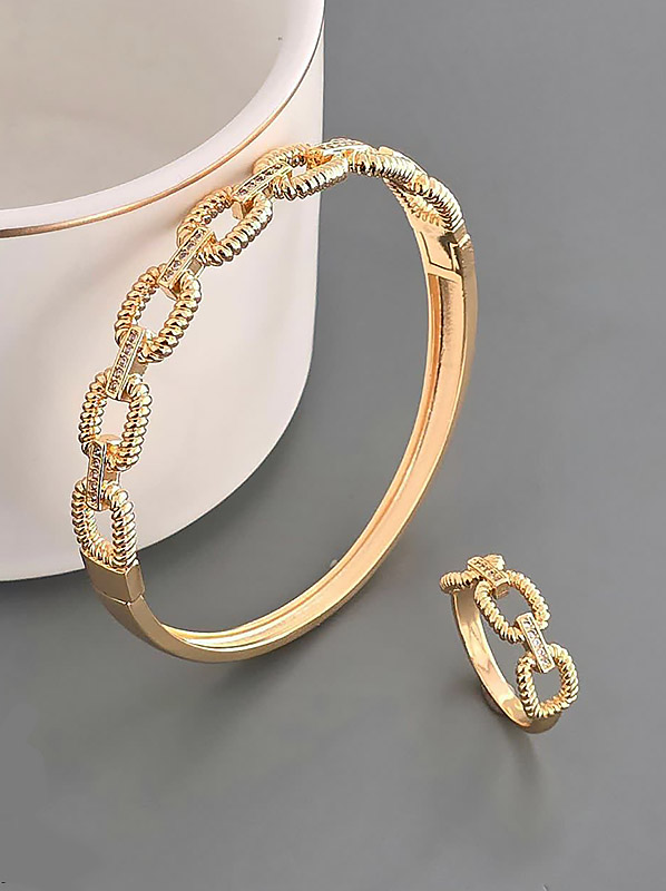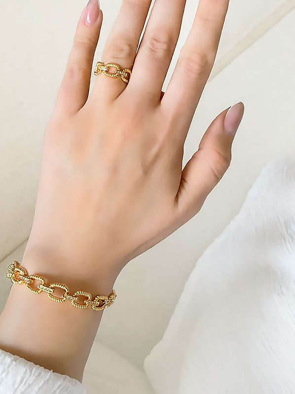 ست دستبند و انگشتر کاملیا تناژ رنگی  طلایی دارد و زیبایی استابل شما را دوچندان می کند.