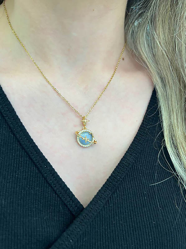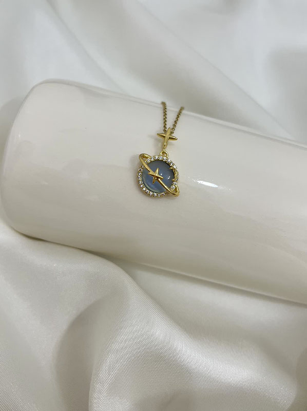 گردنبند زنانه زحل طلایی آبی، با کد 1307 ، یکی دیگر از محصولات و زیورآلات فروشگاه آنیل می باشد.